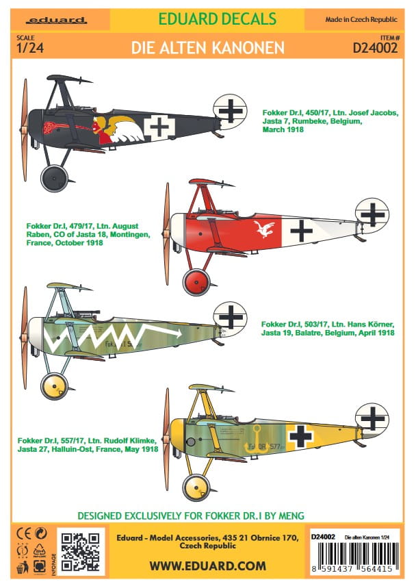 Kalkomania do modelu samolotu Fokker Dr.I.