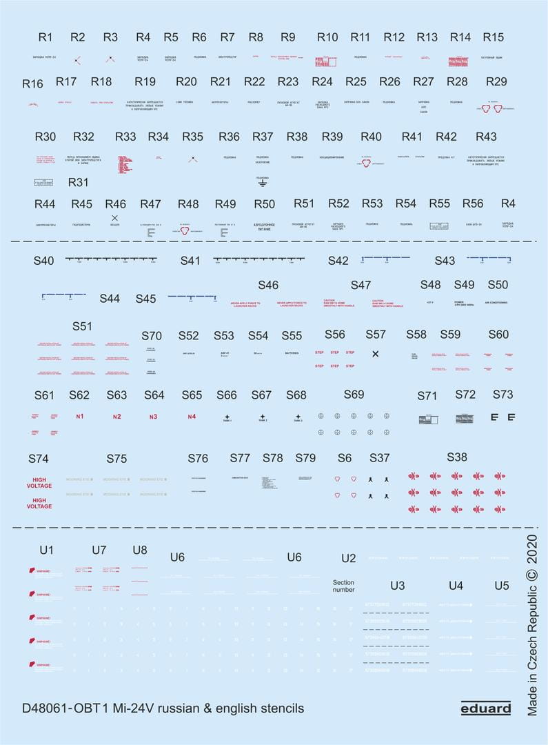 EDUARD D48061 - 1:48 Mi-24V stencils Russian & English