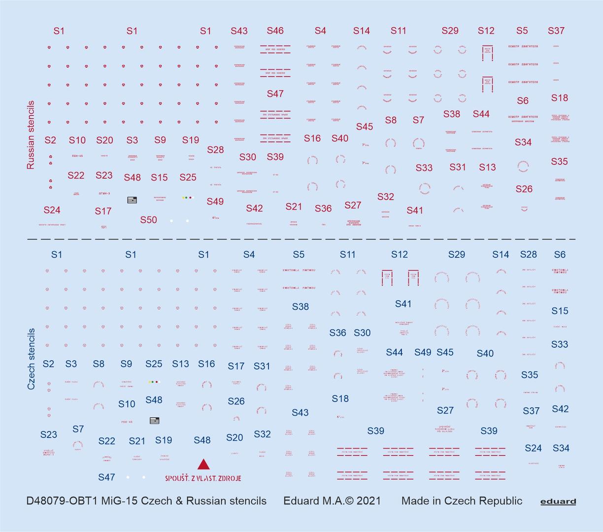 EDUARD D48079 - 1:48 MiG-15 Czech & Russian stencils