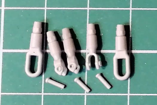 Zestaw plecionej liny mosiężnej i żywicznych zakończeń, którym można zastąpić części modelu plastikowego.