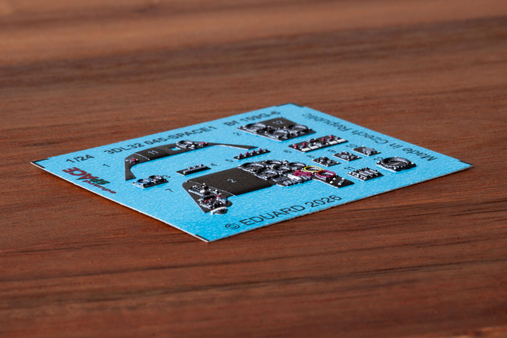 Eduard 3DL32045 to zestaw z serii Space 3D Decals przeznaczony do modelu Messerschmitt Bf 109G-6 w skali 1/24 firmy Airfix. Zawiera trójwymiarowe kalkomanie umożliwiające realistyczną waloryzację kokpitu, w tym tablicy przyrządów oraz paneli bocznych.