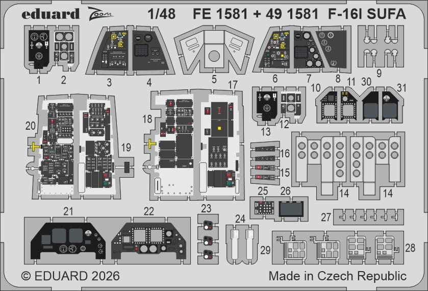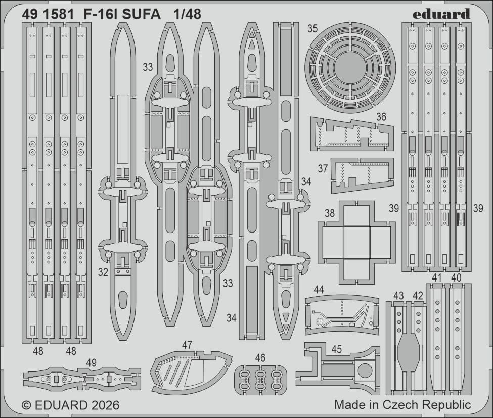 Eduard 491581 to zestaw dodatków modelarskich przeznaczony do modelu samolotu F-16I Sufa w skali 1:48 firmy Great Wall Hobby. Zestaw zawiera elementy fototrawione obejmujące detale kokpitu oraz elementy zewnętrzne, które pozwalają na znaczące podniesienie poziomu szczegółowości modelu.
