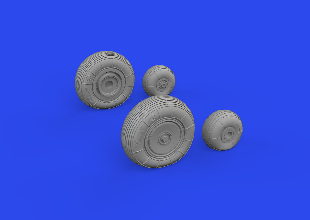 Koła z żywicy do modelu śmigłowca Mi-4 w skali 1/48.