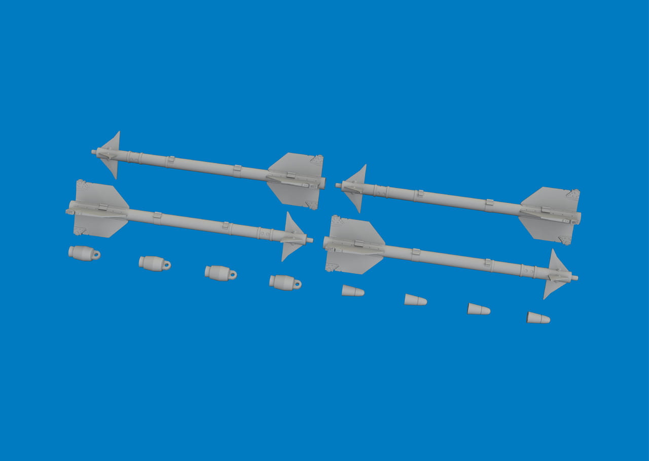 Eduard 672443 to wysokiej jakości zestaw dodatków z serii Brassin przedstawiający pociski powietrze–powietrze AIM-9M/L Sidewinder w skali 1:72. Elementy zostały wykonane w technologii bezpośredniego druku 3D, co pozwala uzyskać bardzo wysoki poziom detali i precyzyjne odwzorowanie uzbrojenia stosowanego na nowoczesnych samolotach bojowych.