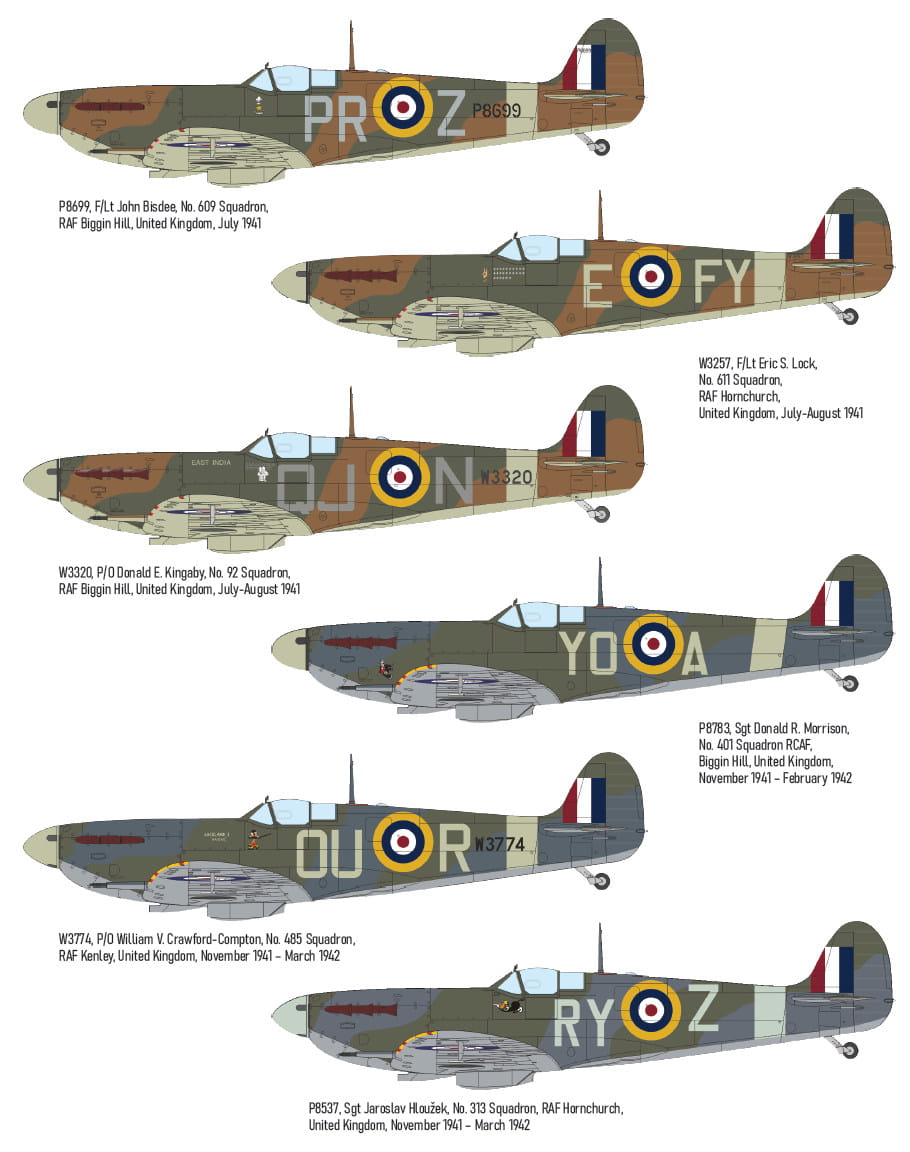 Model z serii ProfiPACK zapewnia wysoką jakość wykonania i bogaty zestaw dodatków. W pudełku znajdują się kolorowe elementy fototrawione ułatwiające odwzorowanie kokpitu, maski malarskie do oszklenia oraz kalkomanie dla sześciu samolotów RAF z różnych jednostek z lat 1941–1942. Starannie opracowana geometria części gwarantuje bardzo dobre spasowanie elementów i realistyczne odwzorowanie kształtu Spitfire’a.