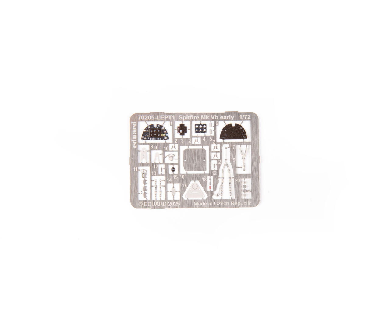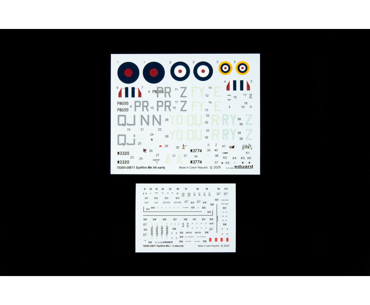 Zestaw Eduard 70205 w skali 1:72 przedstawia słynny myśliwiec Spitfire Mk.Vb w wczesnej wersji produkcyjnej, używany przez Królewskie Siły Powietrzne (RAF) podczas II wojny światowej. Wariant „early” charakteryzował się opancerzoną szybą przednią oraz symetrycznymi wybrzuszeniami pod skrzydłami, wynikającymi z układu uzbrojenia działek Hispano 20 mm.