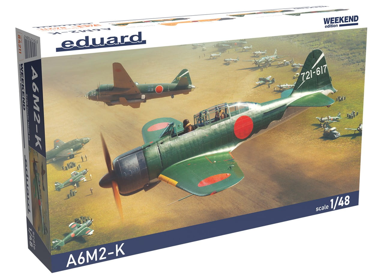 Eduard 84211 przedstawia model japońskiego samolotu szkolno-treningowego A6M2-K, będącego dwumiejscową wersją słynnego myśliwca Mitsubishi A6M Zero. Zestaw w edycji Weekend oferuje uproszczoną zawartość, bez elementów fototrawionych i masek, co pozwala na szybki i przyjemny montaż przy zachowaniu wysokiej jakości detali.