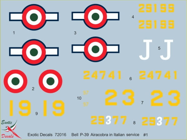 Exotic Decals 72016 - 1:72 Italian Cobras #1 Bell P-39 in Regia Aeronautica - Part 1