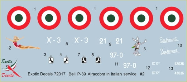 Exotic Decals 72017 - 1:72 Italian Cobras #2 Bell P-39 in Regia Aeronautica - Part 2