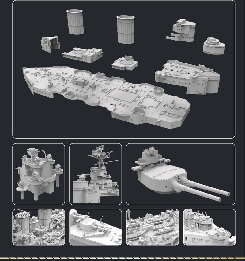 Plastikowy model do sklejania brytyjskiego pancernika HMS Hood. Wersja z 1941 roku. Wersja Deluxe z dodatkami fototrawionymi, żywicznymi i metalowymi lufami.