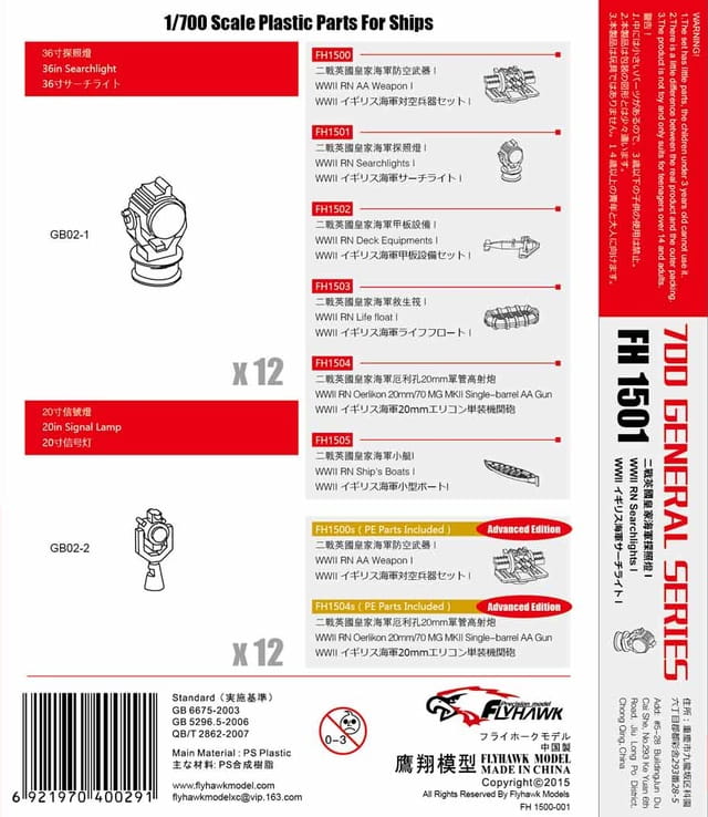FLYHAWK 1501 - 1:700 WWII Royal Navy Searchlights I