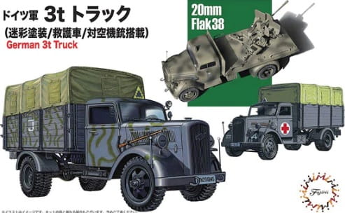 FUJIMI 723211 - 1:72 German 3ton Truck (Camouflaged/Medical Van/w/20mm Flak 38)
