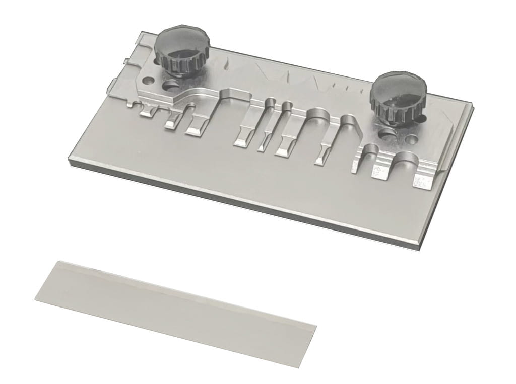 Aby uzyskać najlepsze efekty, umieść element fototrawiony pod listwą dociskową, dokręć śruby dla stabilizacji, a następnie zegnij detal wzdłuż krawędzi narzędzia. Zaginarka pozwala na gięcie zarówno prostych, jak i bardziej złożonych kształtów.