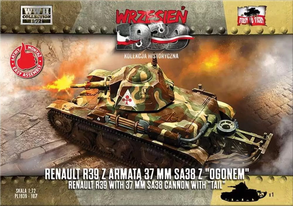 First To Fight 107 - Wrzesień 1939 - 1:72 Renault R39 z armatą 37 mm SA38 z ogonem - Gazetka w zestawie z modelem