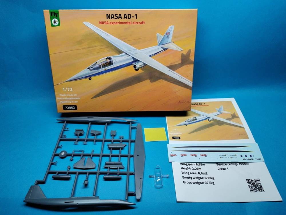Fly 72062 to model w skali 1:72 przedstawiający amerykański samolot eksperymentalny NASA AD-1, zaprojektowany do badań nad skośnym skrzydłem obrotowym. Ten unikalny prototyp był testowany w latach 1979–1982 i stanowił jedną z najciekawszych konstrukcji eksperymentalnych w historii lotnictwa.