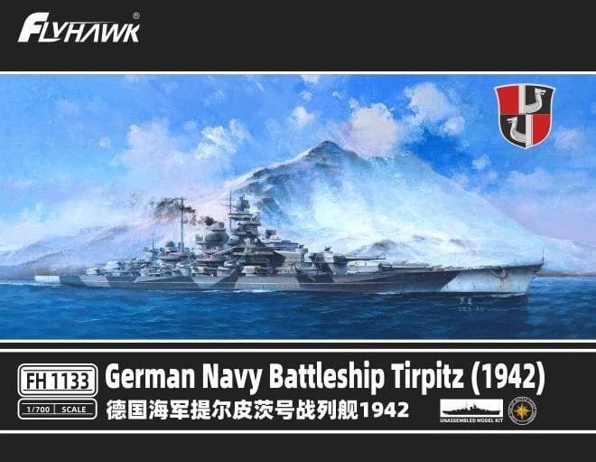 Model niemieckiego pancernika Tirpitz w skali 1:700 firmy Flyhawk przedstawia okręt w konfiguracji z 1942 roku, czyli z okresu jego intensywnej służby operacyjnej na wodach północnych. Zestaw łączy precyzyjne formy plastikowe z dodatkowymi elementami uzupełniającymi, co pozwala na wykonanie bardzo realistycznej miniatury tej potężnej jednostki Kriegsmarine.