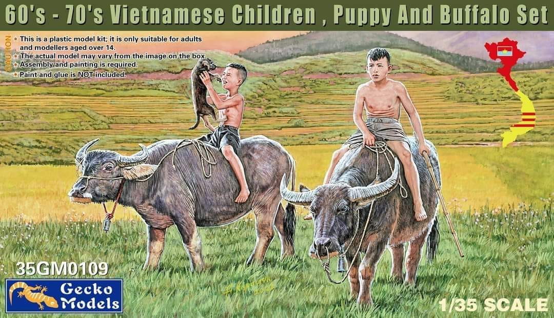 Gecko Models 35GM0109 - 1:35 60'-70's Vietnamese Children, Puppy and Buffalo Set