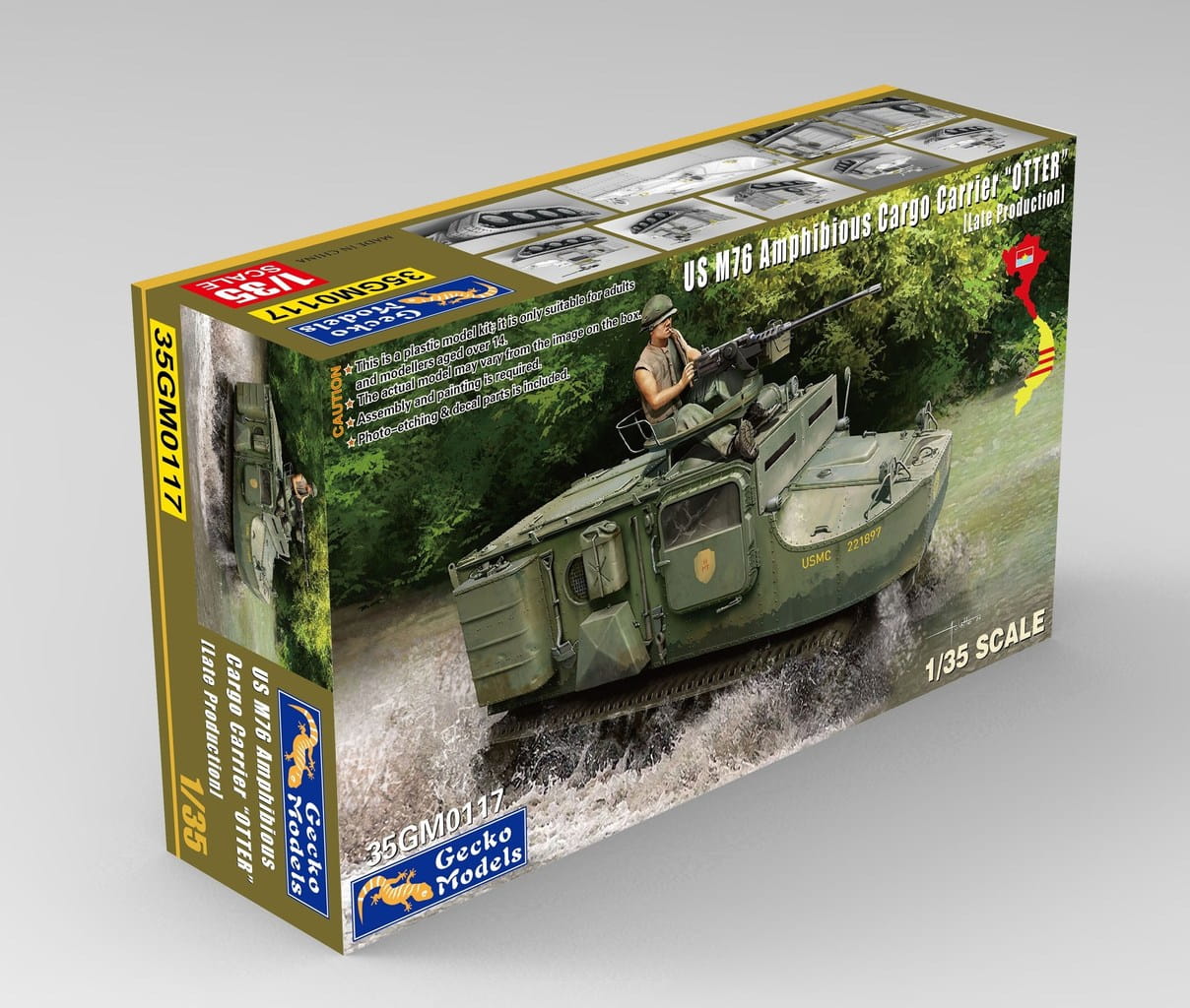 Model firmy Gecko Models przedstawia amerykański amfibijny pojazd transportowy M76 Otter w późnej wersji produkcyjnej. Ten lekki gąsienicowy transporter został opracowany w latach 50. jako następca pojazdu M29 Weasel. Dzięki zdolności do poruszania się zarówno po lądzie, jak i po wodzie, M76 był wykorzystywany przez Korpus Piechoty Morskiej USA, jednostki armii oraz siły NATO w różnych teatrach działań – od Arktyki po Wietnam.