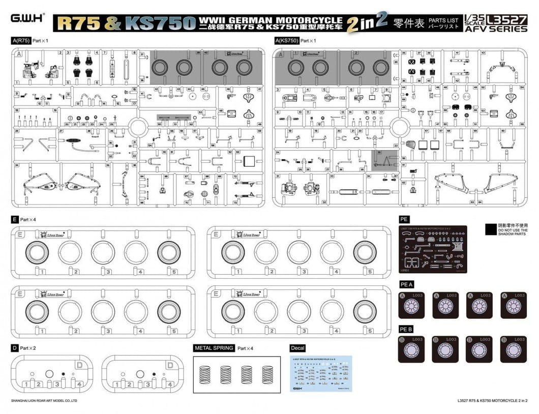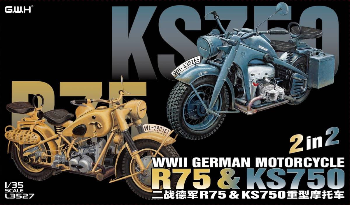 Great Wall Hobby 3527 - 1:35 WWII German Motorcycle R75 & KS750 2 in 2