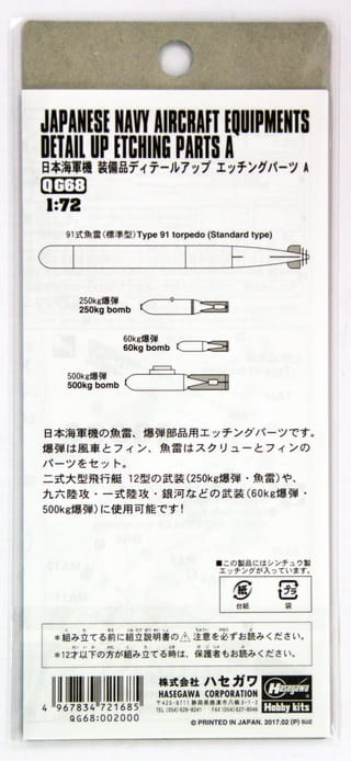 HASEGAWA 72168 QG68 - 1:72 Japan Naval Aircraft Equipment Etched Parts Set A