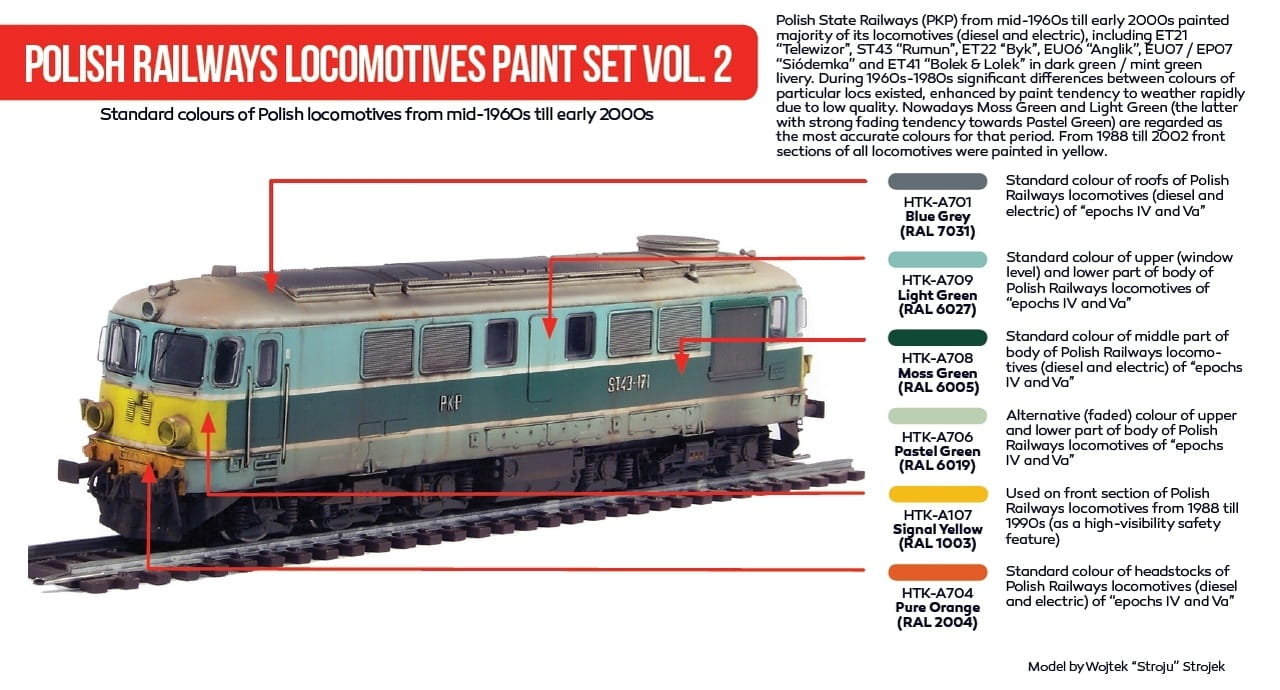 Zestaw farb akrylowych Hataka Polish Railways locomotives vol. 2 - kolory używane na lokomotywach PKP.