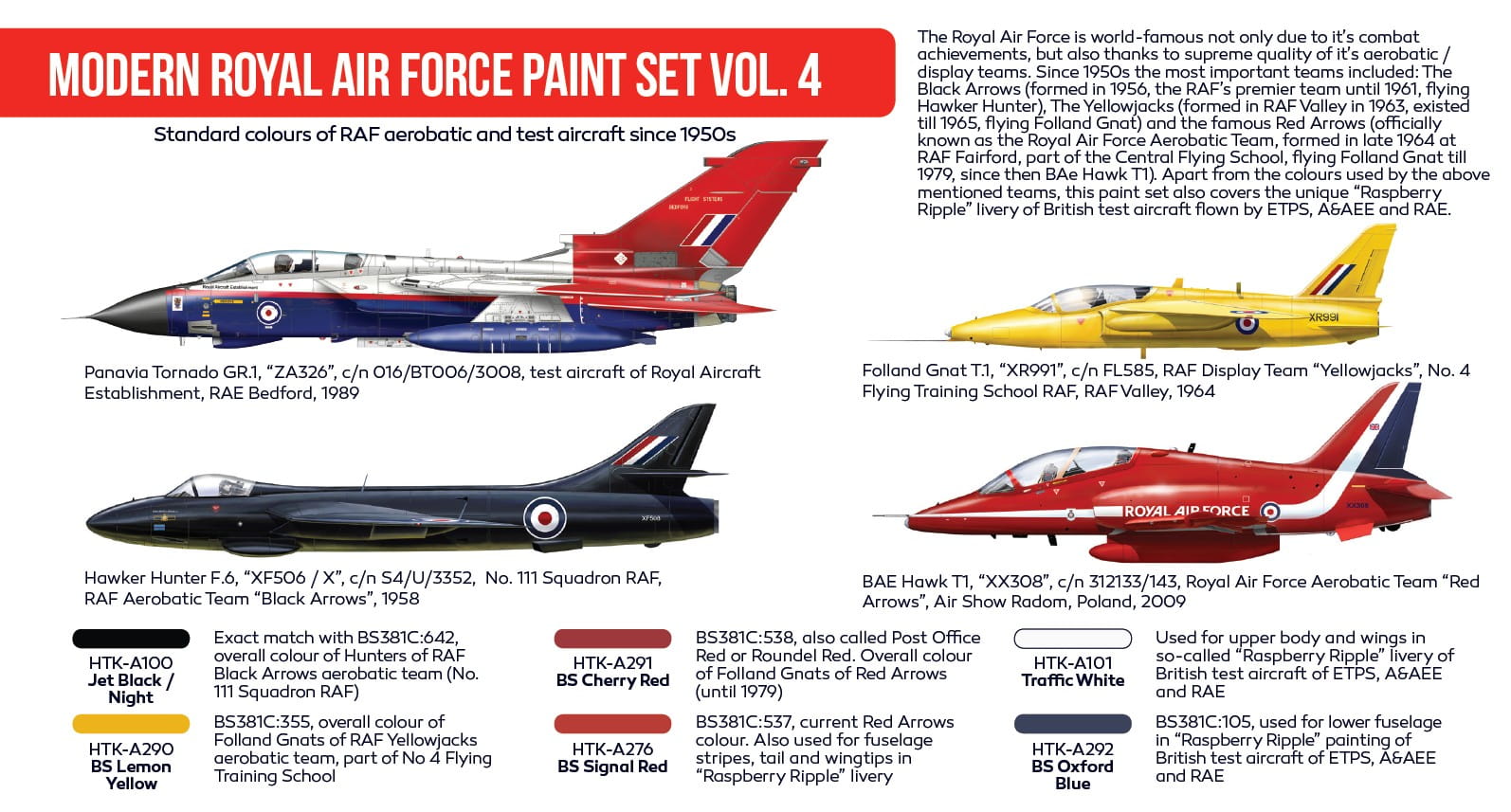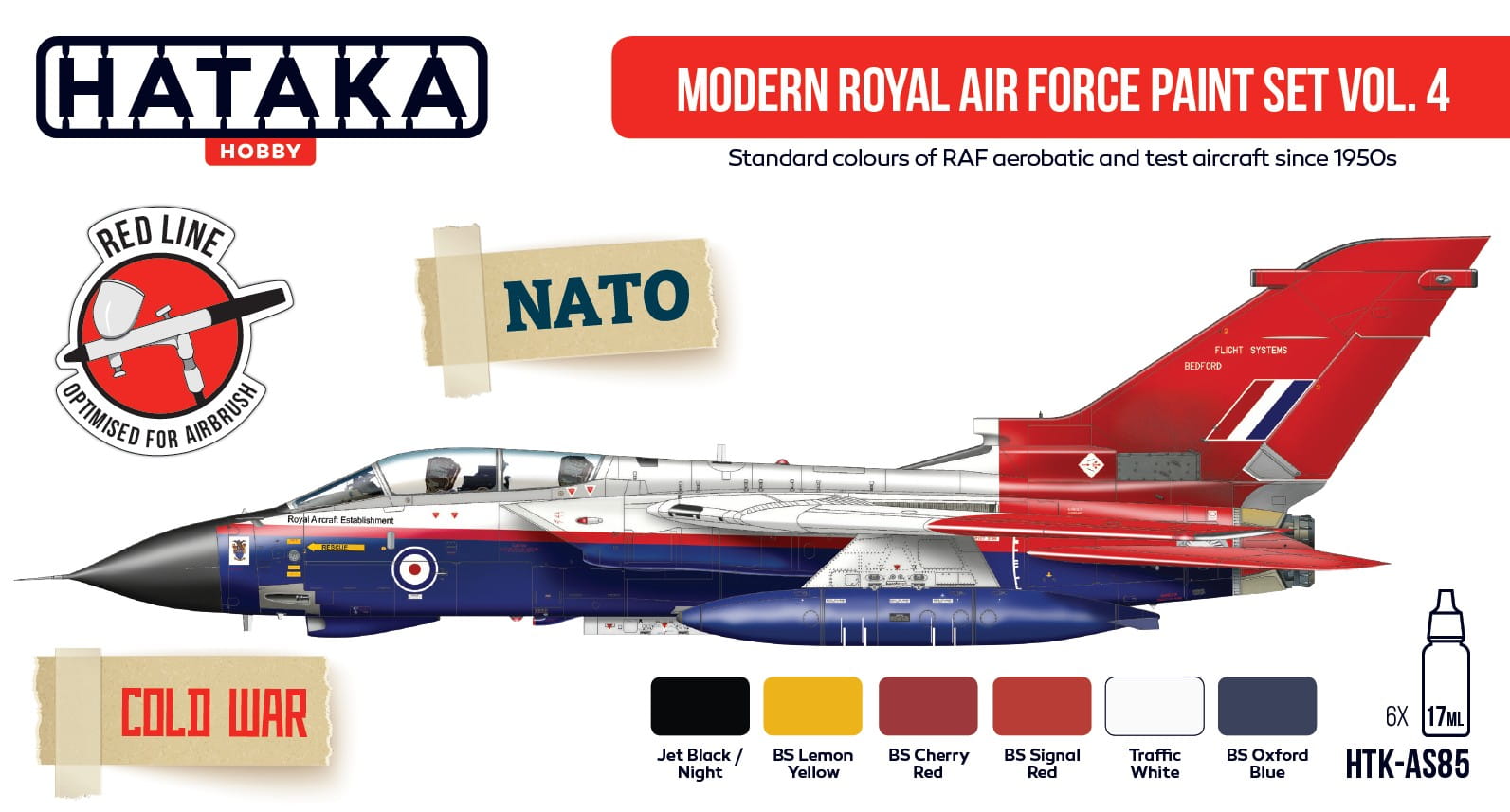 Zestaw farb akrylowych Hataka Modern Royal Air Force vol. 4 - kolory używane na współczesnych Brytyjskich samolotach wojskowych.