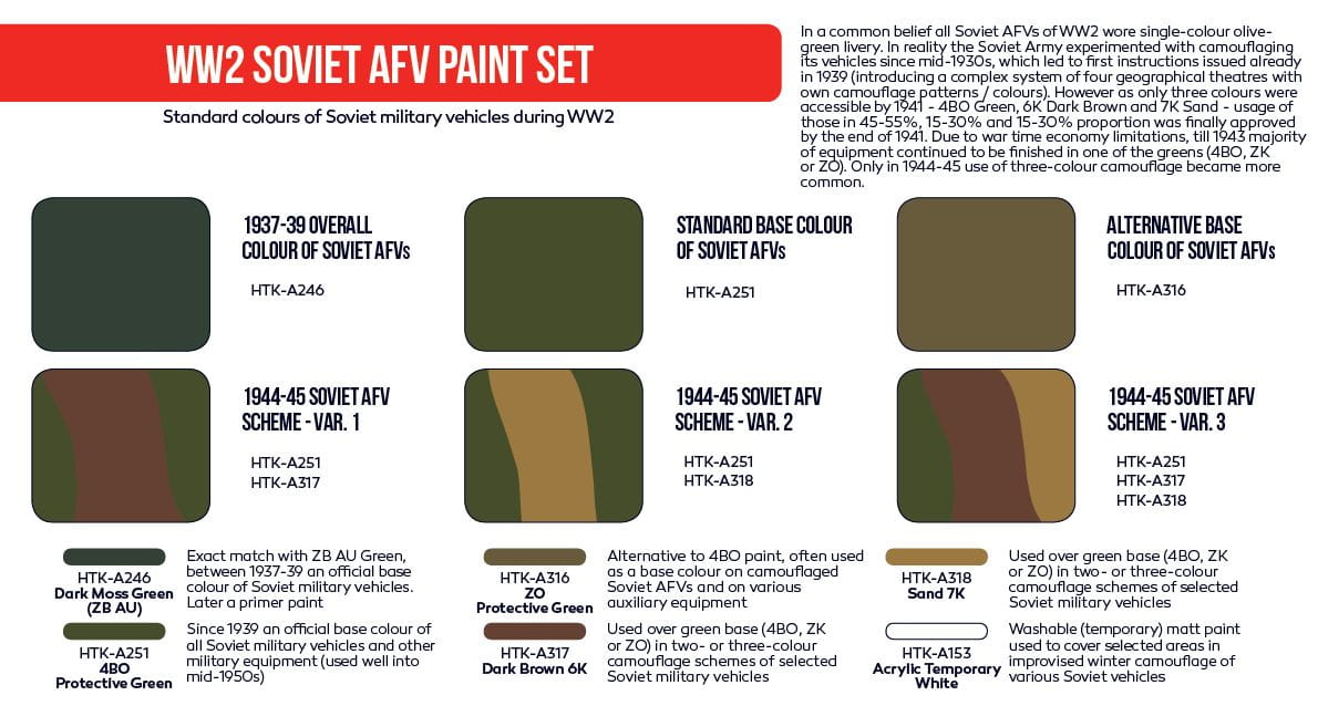 Zestaw farb akrylowych Hataka WW2 Soviet AFV - kolory używane na pojazdach wojskowych przez Armię Czerwoną w okresie II wojny św.