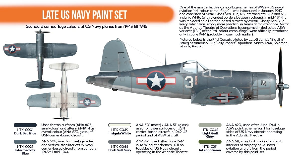 Zestaw farb akrylowych Hataka b Late US Navy - kolory do samolotów Sił Powietrznych Marynarki Stanów Zjednoczonych z okresu II wojny św.