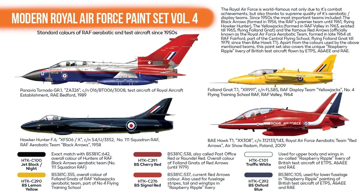 Zestaw farb akrylowych Hataka Modern Royal Air Force vol. 4 - kolory używane na współczesnych Brytyjskich samolotach wojskowych.