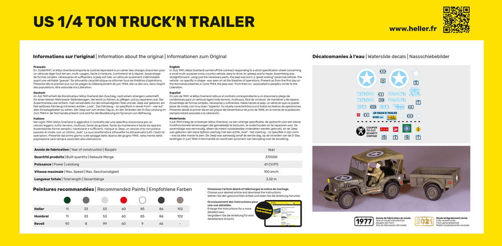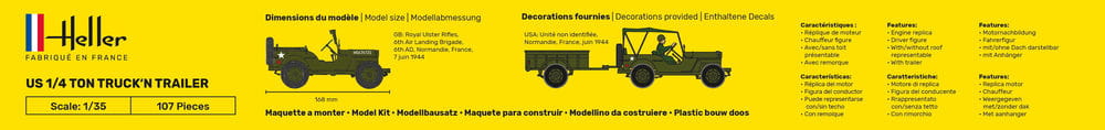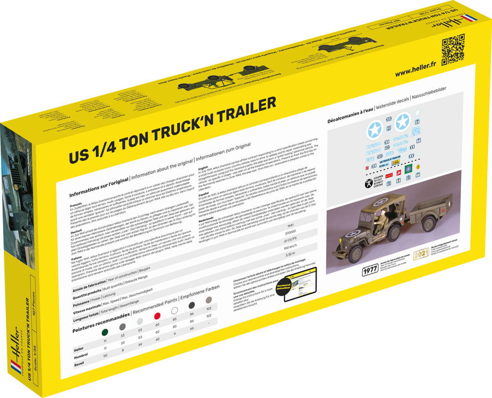 HELLER 57105 - 1:35 US 1/4 Ton Truck with Trailer