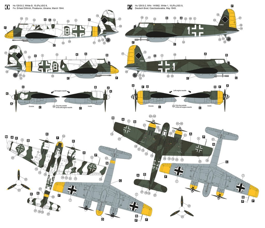 Model plastikowy do sklejania niemieckiego samolotu szturmowego Henschel Hs 129 B-2. Malowania z frontu wschodniego.