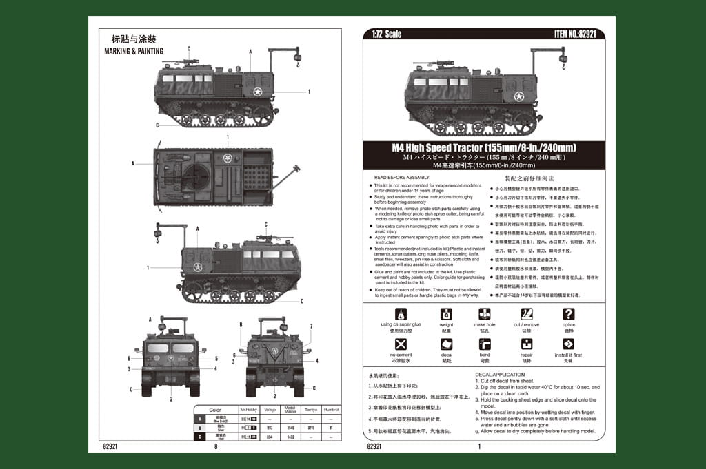 HOBBY BOSS 82921 - 1:72 M4 High Speed Tractor (155mm/8-in./240mm)