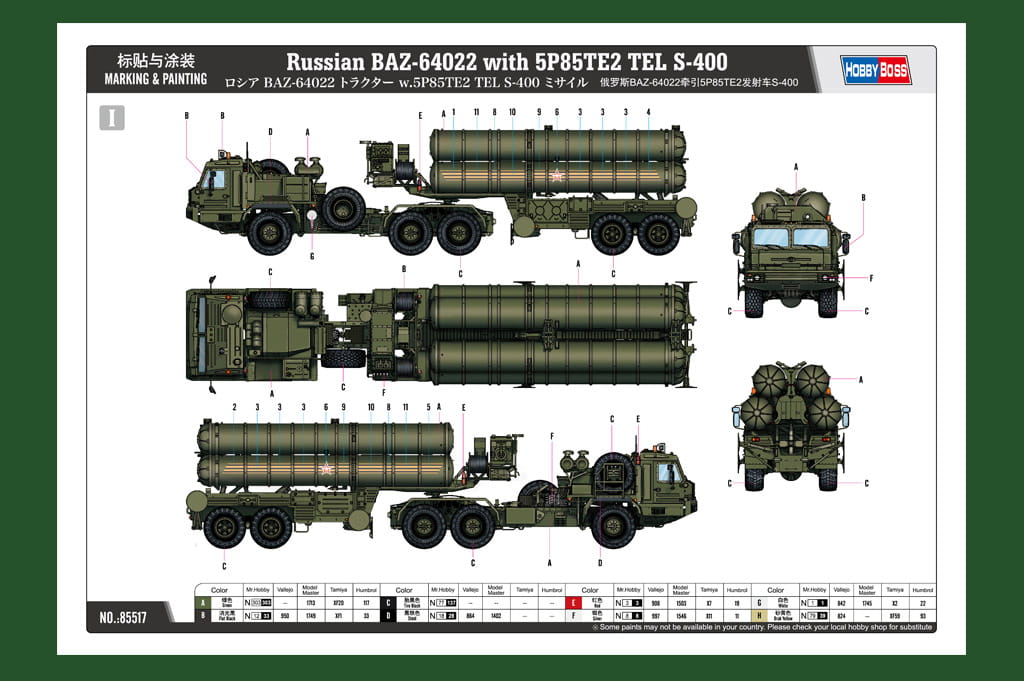 HOBBY BOSS 85517 - 1:35 Russian BAZ-64022 with 5P85TE2 TEL S-400