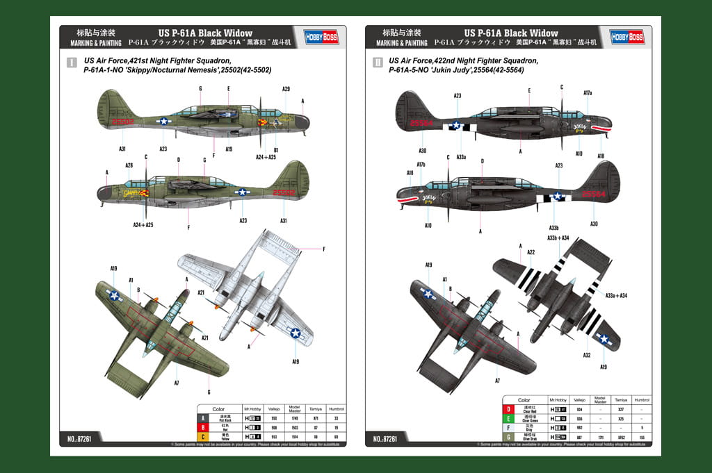 HOBBY BOSS 87261 - 1:72 US P-61A Black Widow