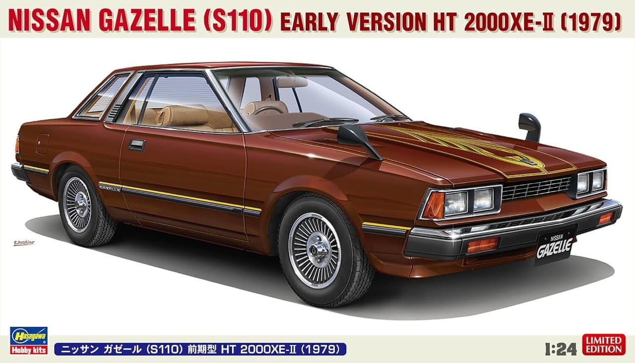 Model przedstawia Nissan Gazelle S110 – stylowe coupé klasy średniej z końca lat 70. Wersja HT 2000 XE-II była jedną z bardziej prestiżowych odmian, wyposażoną w silnik 2.0 l, bogatsze wykończenie oraz charakterystyczny kanciasty design epoki. Nissan Gazelle był oferowany równolegle z modelem Silvia, różniąc się detalami nadwozia i wykończeniem. Model w skali 1/24 odwzorowuje wczesną wersję nadwozia typu hardtop z rocznika 1979.