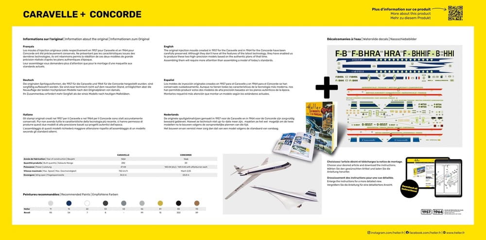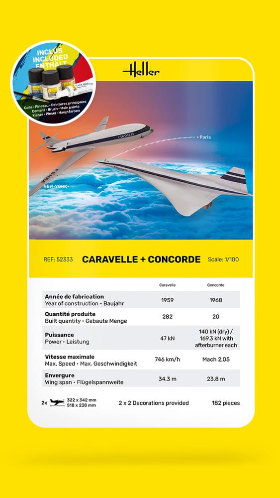Heller 52333 - 1:100 Caravelle + Concorde - zestaw z farbami