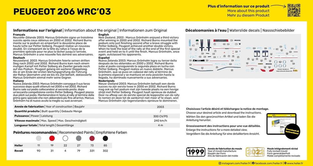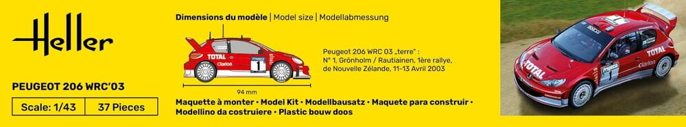 Heller 56113 - 1:43 Peugeot 206 WRC '03 model z farbami