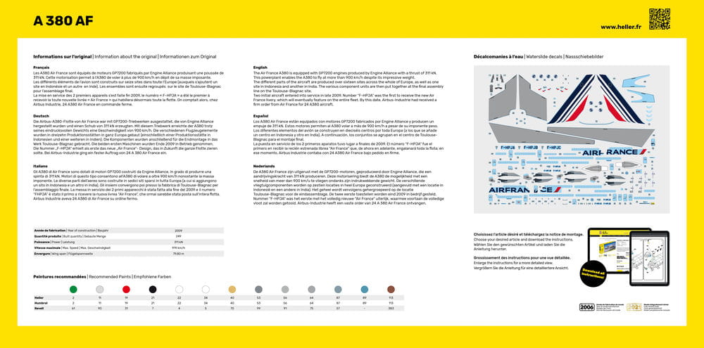 Heller 56436 - 1:125 Airbus A 380 AF - zestaw z farbami