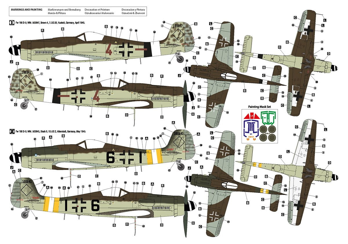 Model plastikowy do sklejania niemieckiego samolotu myśliwskiego Focke Wulf Fw 190-9 z późnego okresu produkcji.