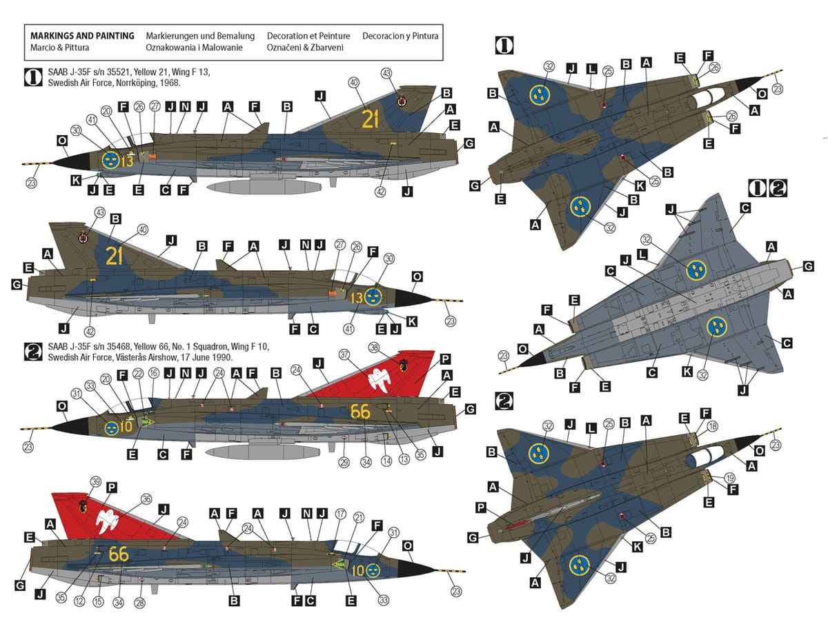 Model plastikowy do sklejania szwedzkiego myśliwca Saab J-35F Draken.