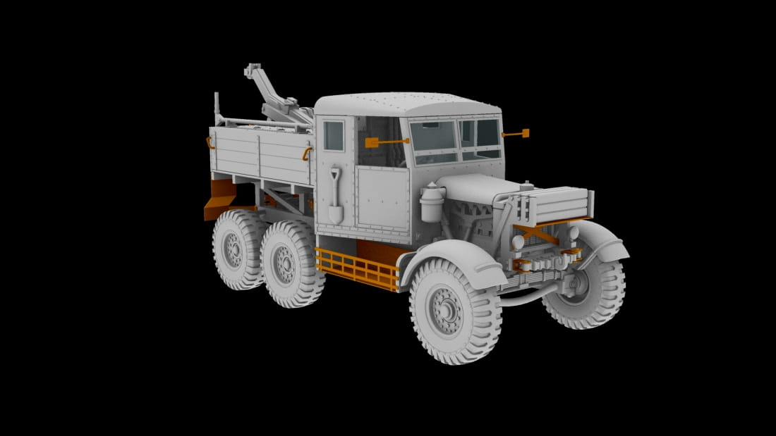 Model plastikowy do sklejania brytyjskiej ciężarówki Scammell Pioneer SV/2S. Wersja ciągnik ewakuacyjny.