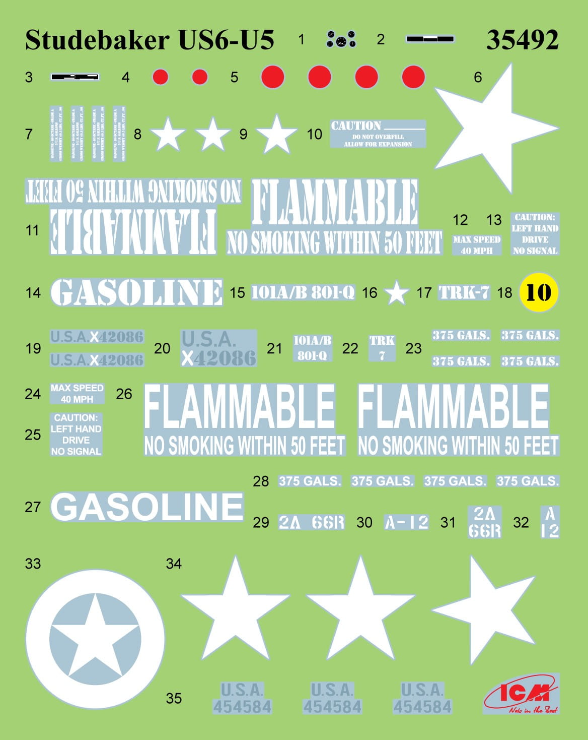 Kompletny zestaw trzech amerykańskich ciężarówek wojskowych z okresu II wojny światowej w skali 1:35, wyprodukowany przez firmę ICM. Zestaw zawiera modele: Chevrolet G7117 1½-ton 4×4 cargo truck, Studebaker US6-U3 (wersja z otwartą kabiną) oraz Studebaker US6-U5 (wersja z zamkniętą kabiną i długą skrzynią ładunkową). Wszystkie pojazdy odegrały ważną rolę w zaopatrzeniu sił alianckich, m.in. w ramach Lend-Lease dla ZSRR.