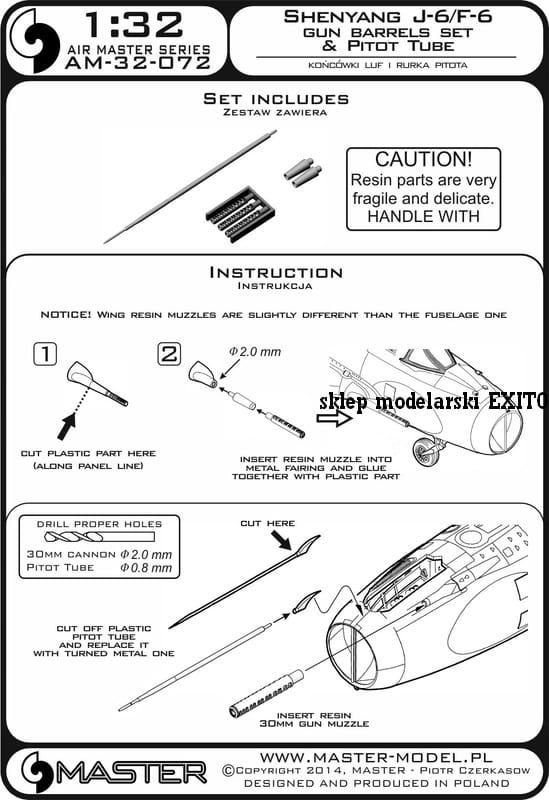 MASTER AM-32-072 - 1:32 Shenyang J-6/F-6 końcówki działek 30mm i rurka Pitota