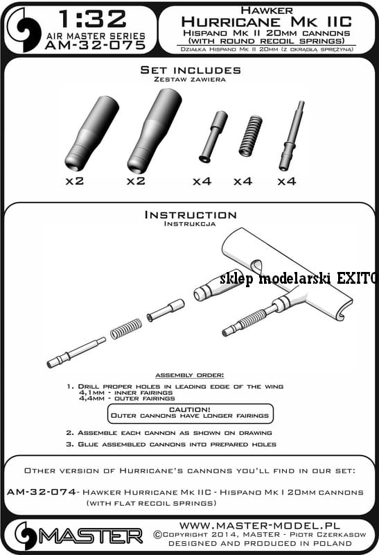 MASTER AM-32-075 - 1:32 Hawker Hurricane Mk IIC działka Hispano Mk II 20mm z okrągłą sprężyną