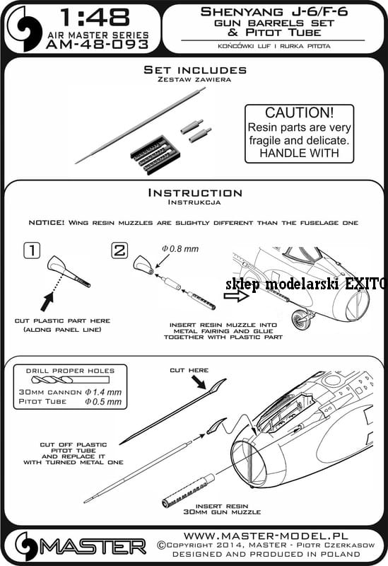 MASTER AM-48-093 - 1:48 Shenyang J-6/F-6 końcówki działek 30mm i rurka Pitota