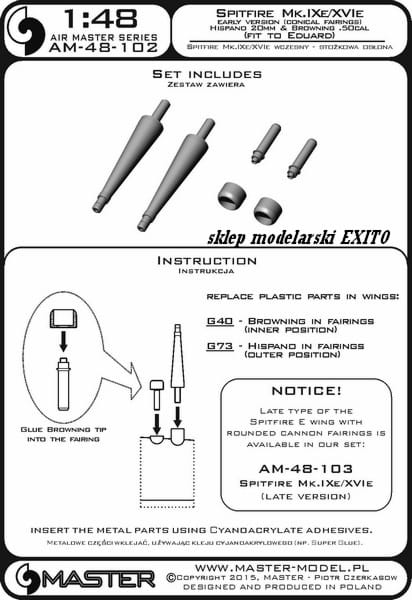 MASTER AM-48-102 - 1:48 Spitfire Mk.IXe/XVIe wczesny stożkowa osłona luf działek Hispano 20mm i km Browning .50cal