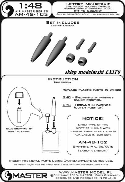MASTER AM-48-103 - 1:48 Spitfire Mk.IXe/XVIe późny zaokrąglona osłona luf działek Hispano 20mm i km Browning .50cal