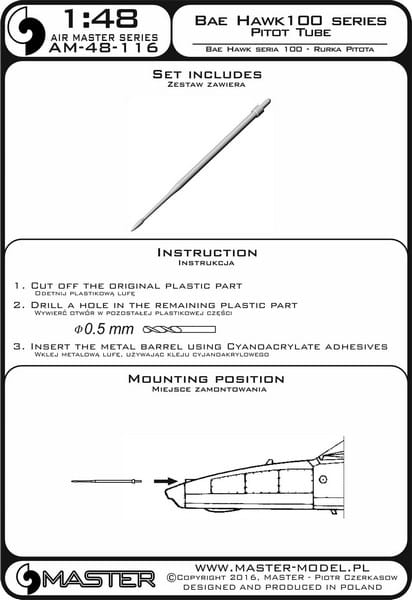 MASTER AM-48-116 - 1:48 BAE Systems Hawk 100 rurka Pitota