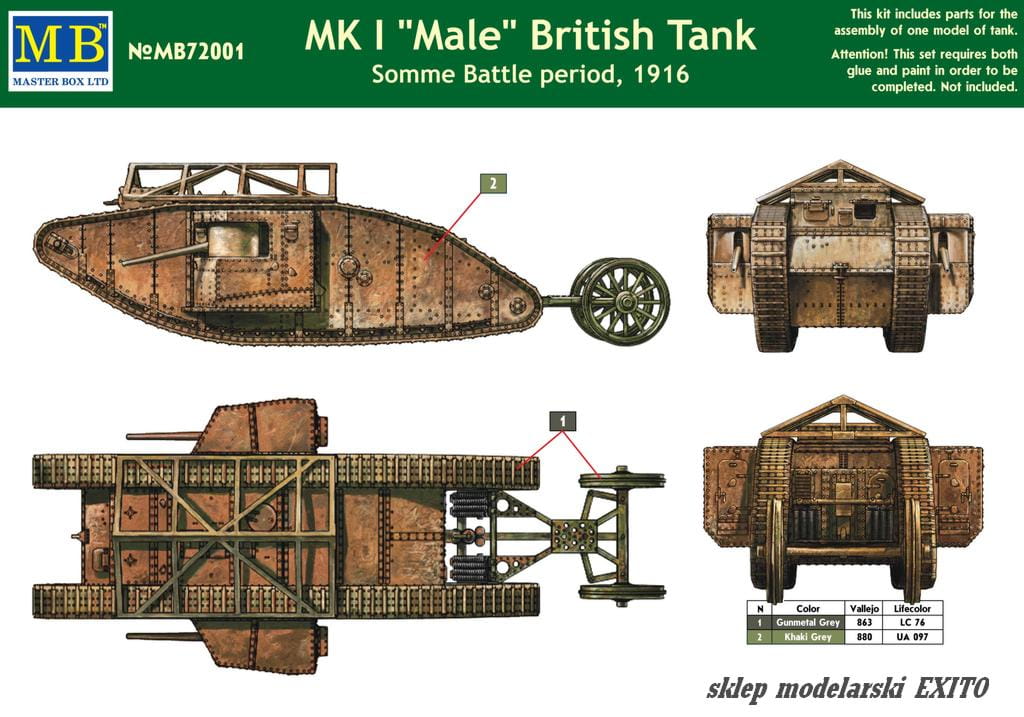 MASTER BOX 72001 - 1:72 MK I Male - British Tank - Somme Battle period, 1916