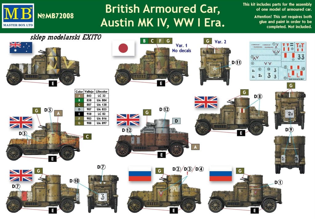 MASTER BOX 72008 - 1:72 British Armoured Car Austin MK IV WW I Era